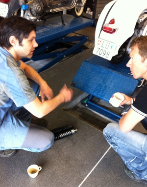 Pünktlich zu den ersten Sonnenstrahlen fand am 28. April 2012 bei der Garage Amrein in Altbüron der erste Vespa Service Day statt. Unter der Leitung von Pius und Flavio wurden die Vespas für die kommende Saison aus dem Winterschlaf geholt. Diverse wichtige Arbeiten wurden durchgeführt: Motorenwäsche, Gepäck-Träger montiert, Öl Wechsel, Pneu pumpen oder ganze Tuning-Kits wurden verbaut Anschliessend an die anstrengende Werkerei genossen wir eine feine Pizza im Kreuz. Herzlichen Dank an Flavio und Pius für ihre kompetente Unterstützung! |